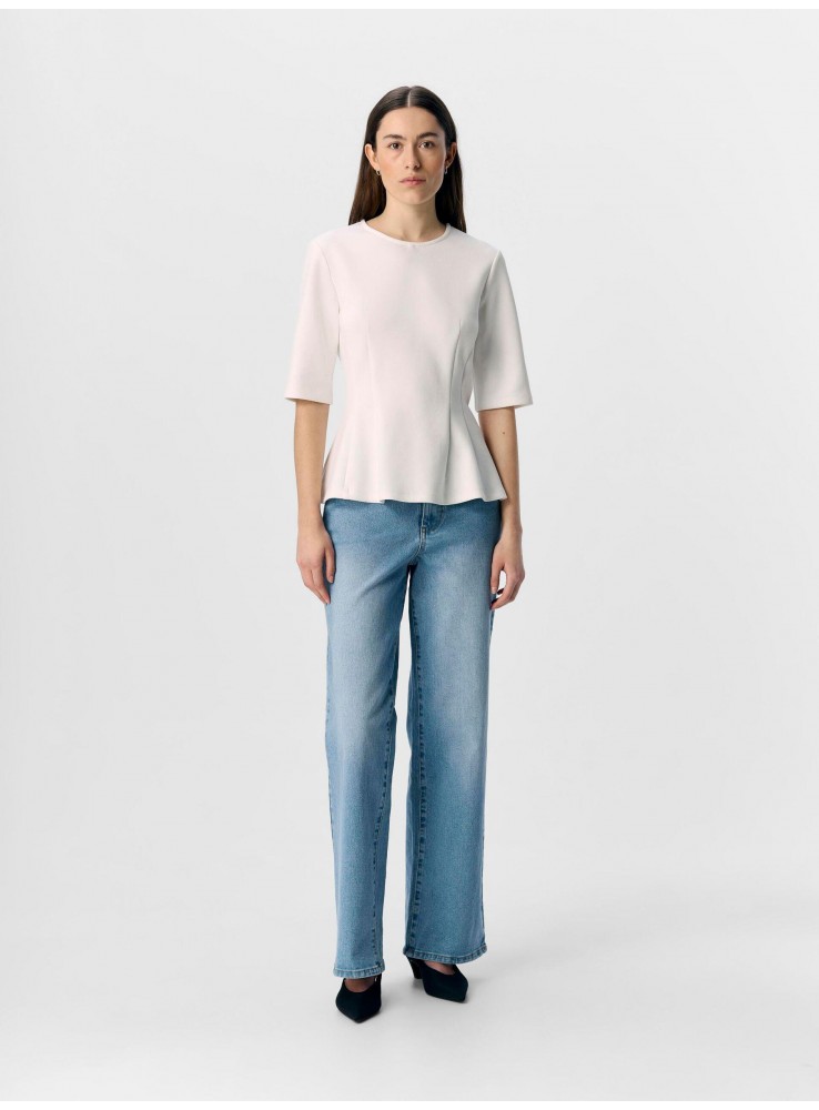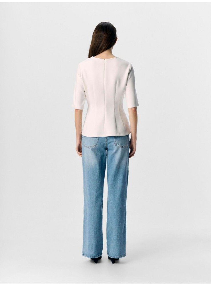 Top de Object, de neopreno en color blanco, de manga corta y cuello redondo.