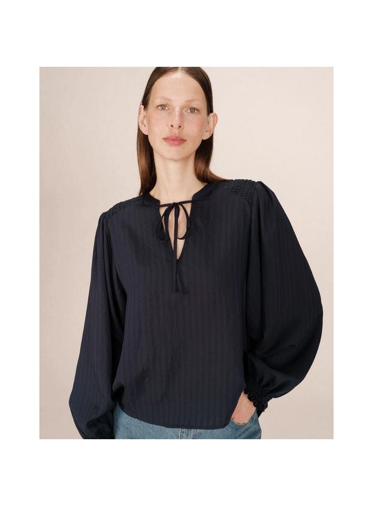 Blusa Grace & Mila, de viscosa , tipo túnica , con cuello redondo y manga larga.