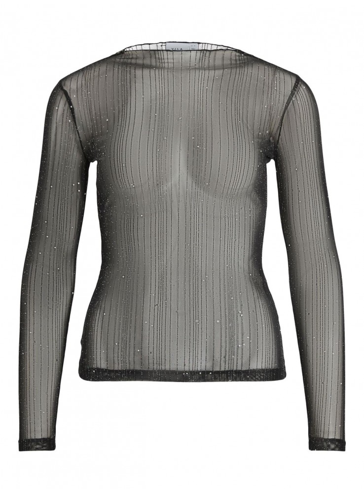 Top de Vila, con cuello caja, de tul transparente con un toque de brillo.