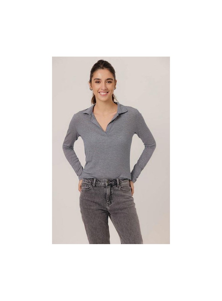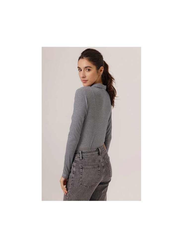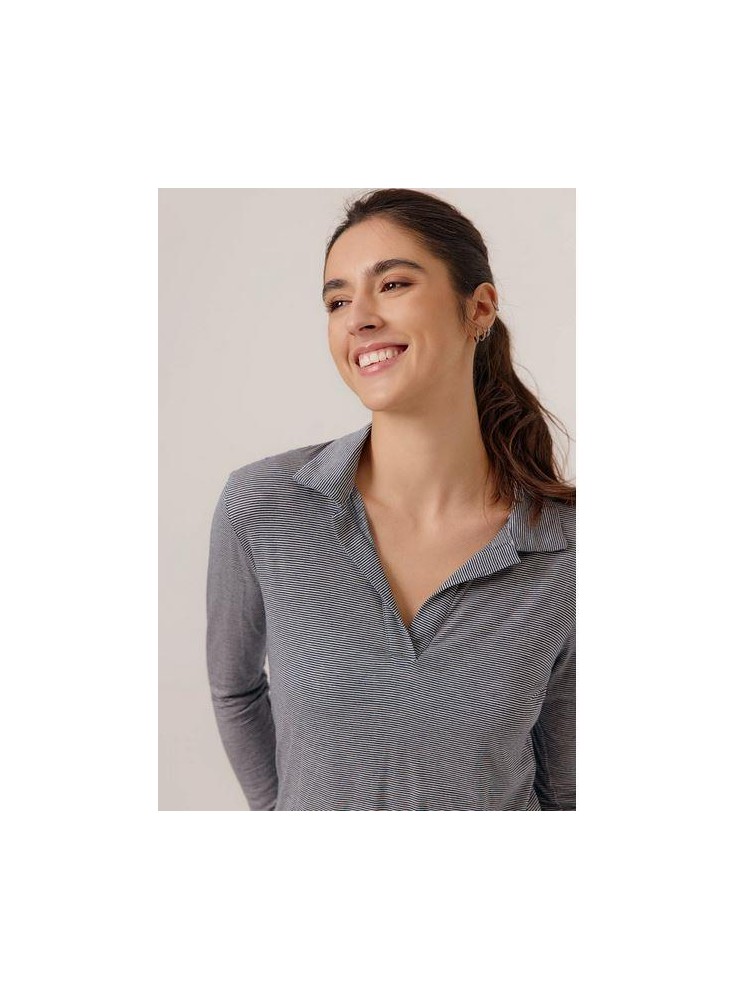 Polo de Art Love, de tejido finito con mil rayas. Es de cuello de pico con solapas y manag larga.