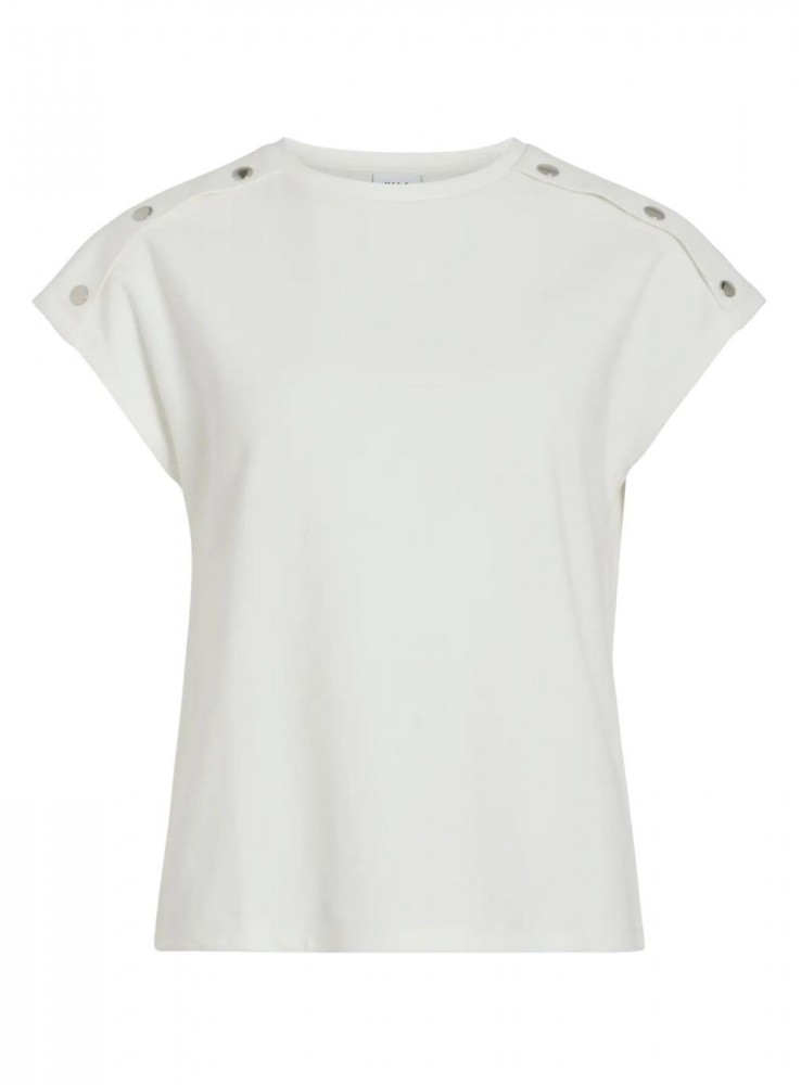 Camiseta Vila, de algodòn en blanco, con manga japonesa y cuello redondo.
