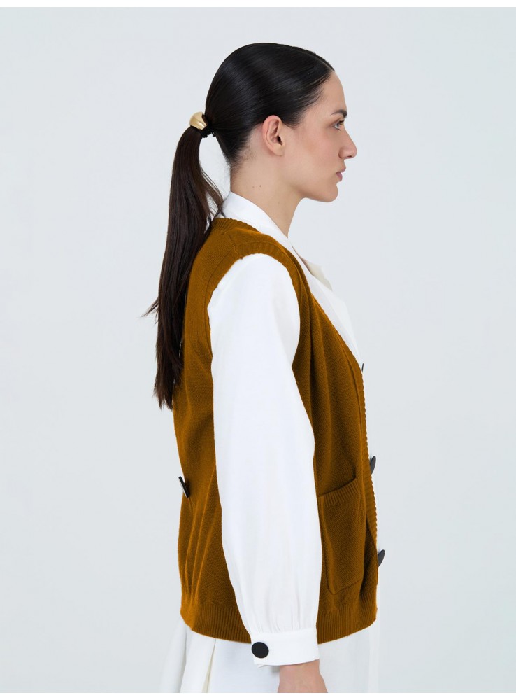 Chaleco de punto de Skatie, abierto sin botones.