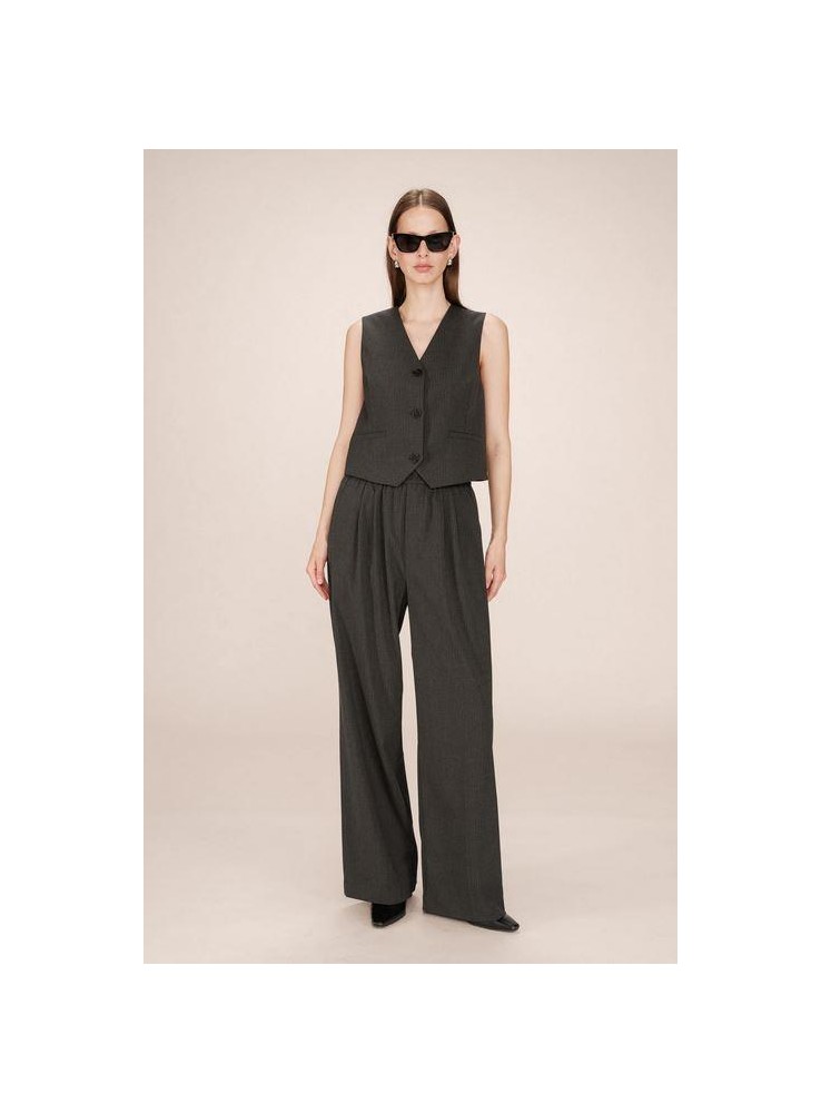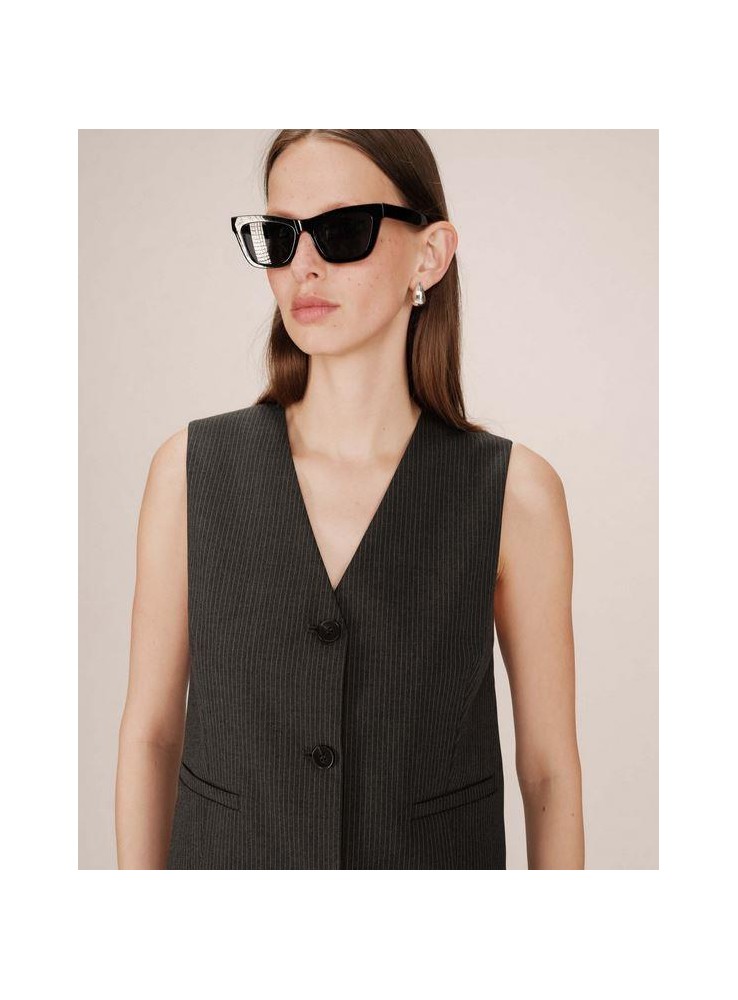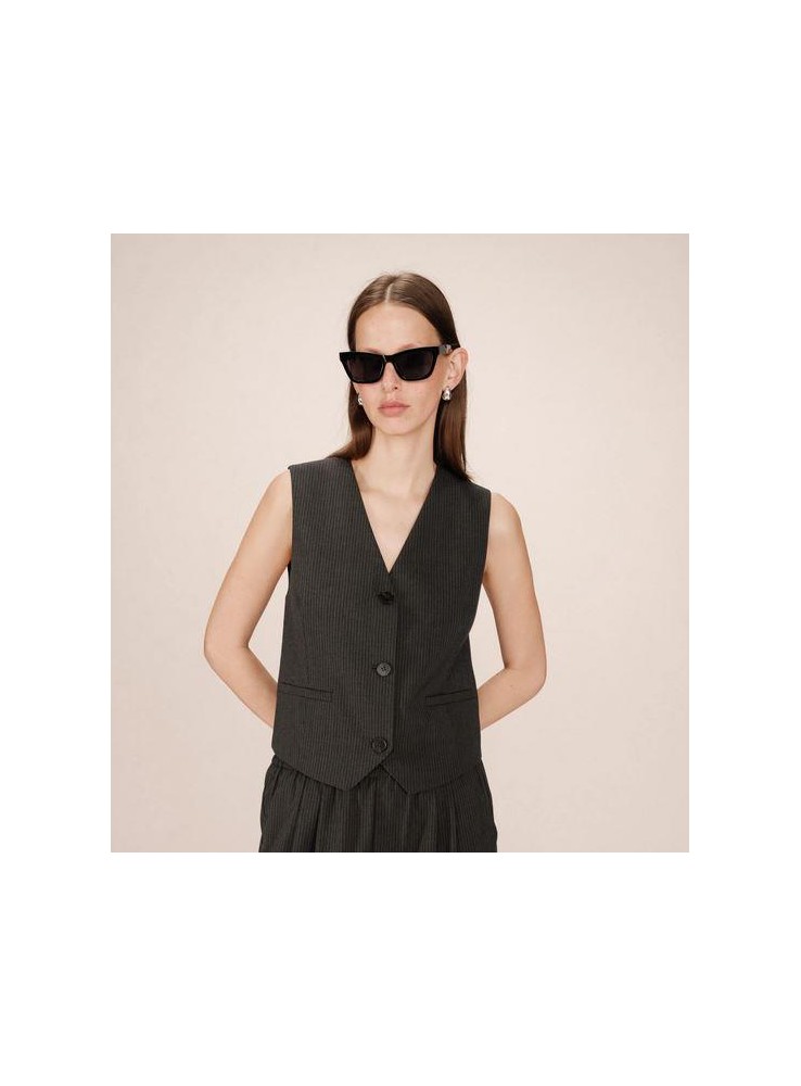 Chaleco de Grace & Mila, de tejido en gris con raya diplomática muy fina.
