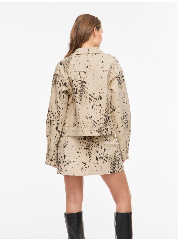 Chaqueta vaquera de Vila, de fondo beige con print.