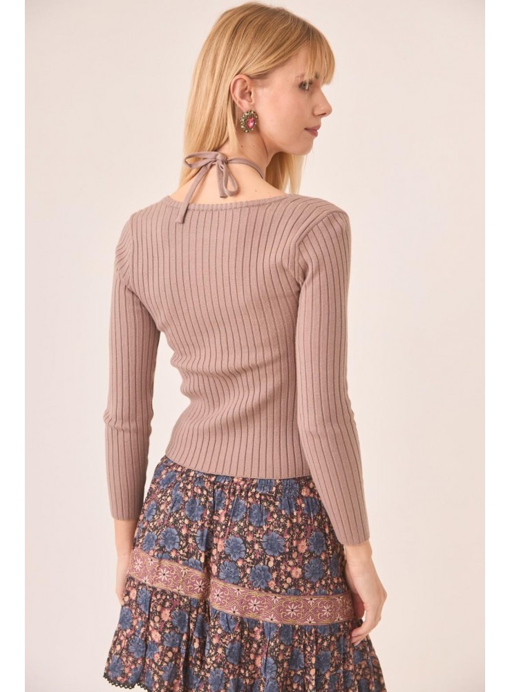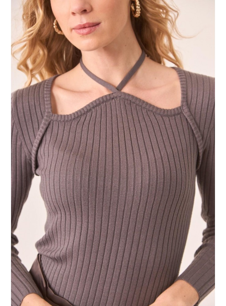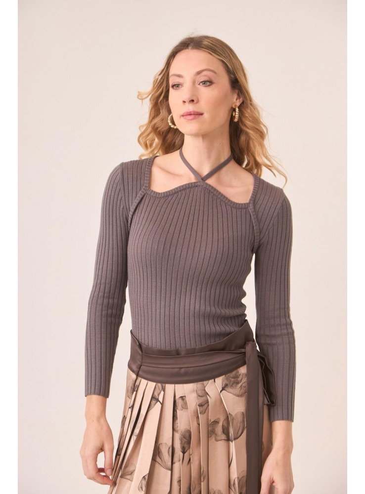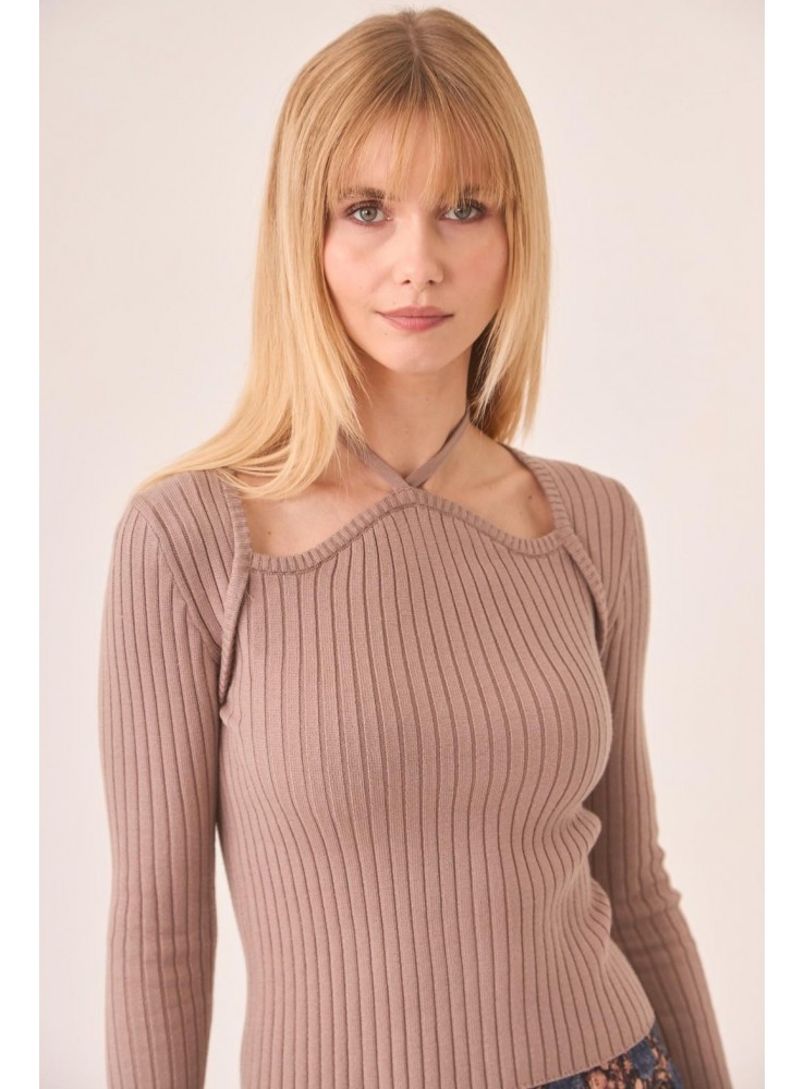 Jersey de Nekane, de punto acanalado de manga larga y escote halter con cut outs.