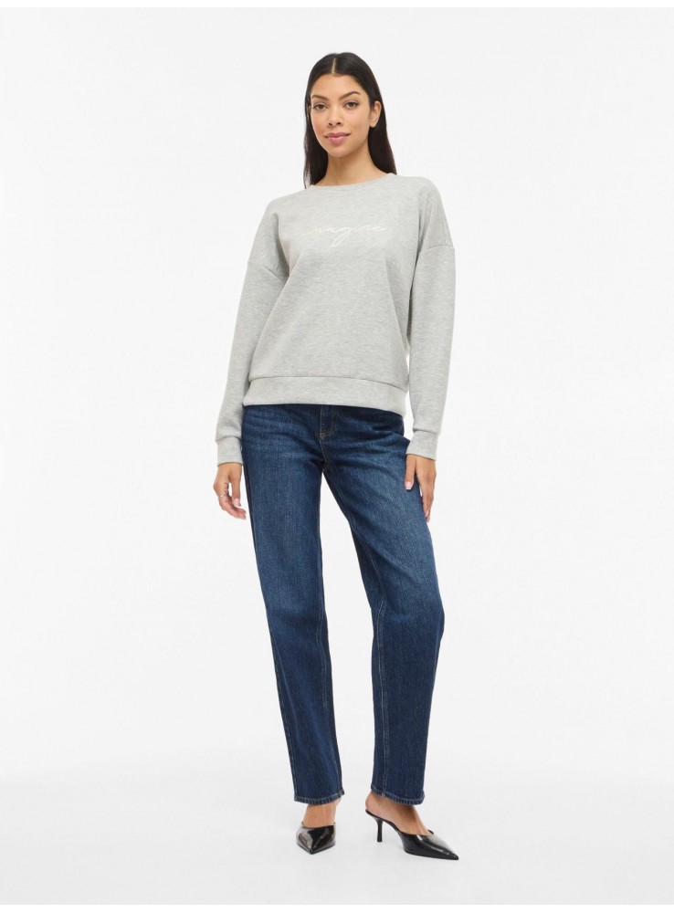 Sudadera Vila, de manga larga y cuello redondo, en color gris claro con bordado en beige "imagine"