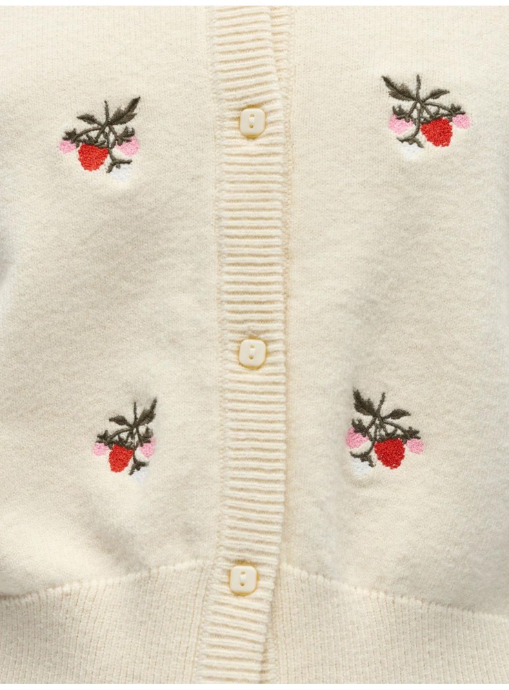 Bordada en toda la prenda con motivos de colores.